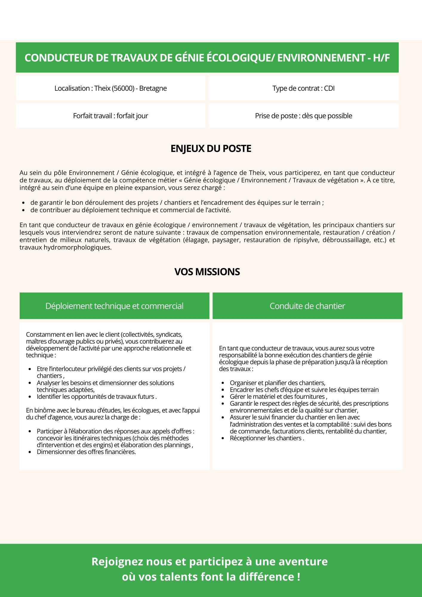 Conducteur de travaux de Végétation / Génie écologique - H/F